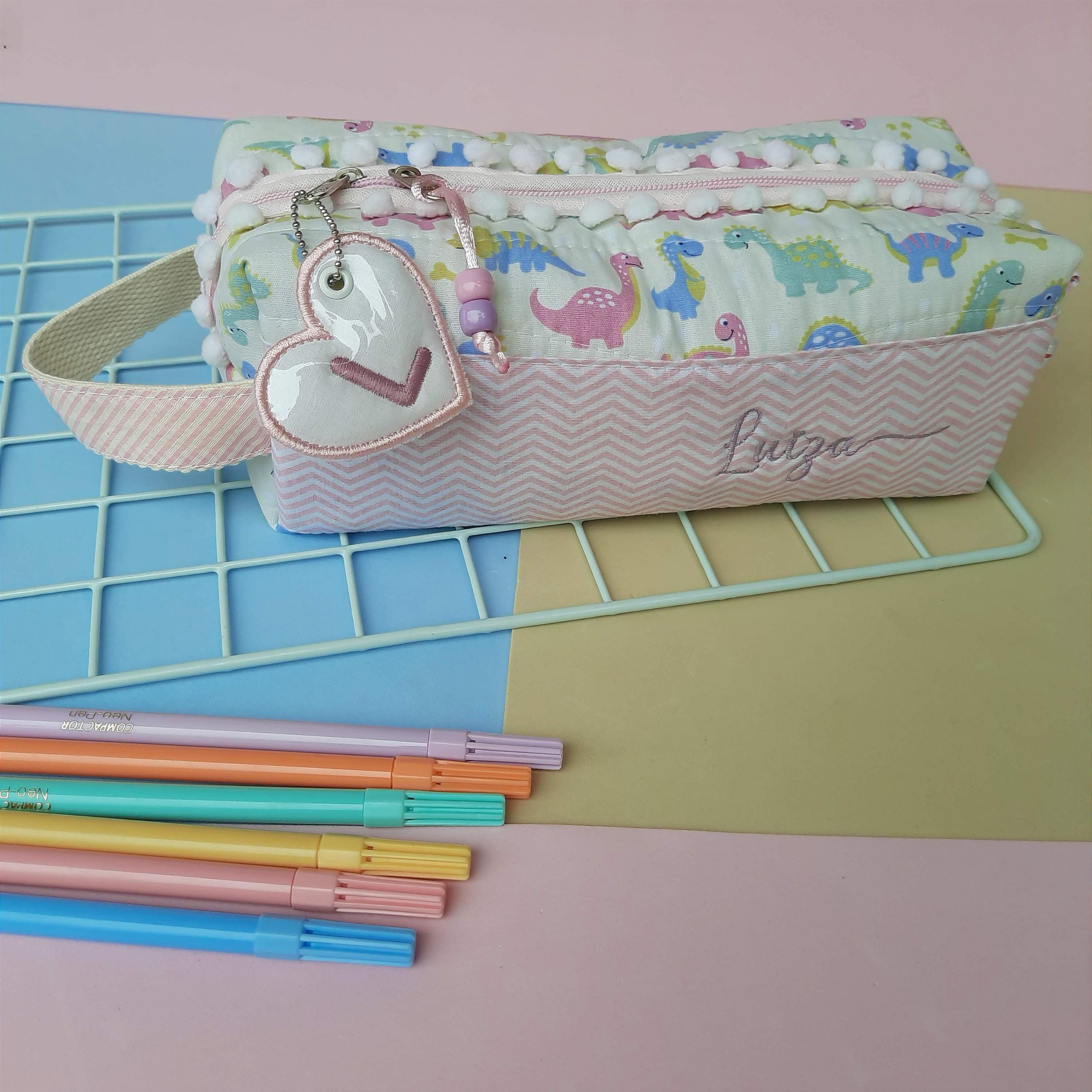 Perfeito para organizar todos os materiais de forma prática e estilosa, este estojo vem com o nome do seu filho(a) bordado, garantindo um toque único e cheio de personalidade.